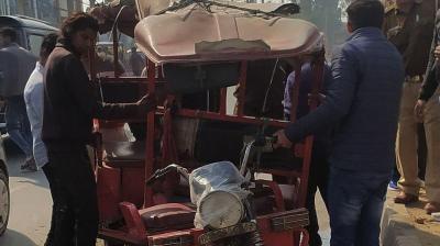तेज रफ्तार एम्बुलेंस ने ई-रिक्शा को मारी टक्कर, गंगा स्नान जा रहे लोगों में मचा हड़कंप