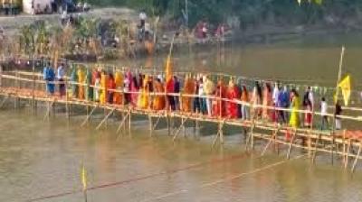चचरी पुल से जान जोखिम में डालकर अर्घ्य, प्रशासन की लापरवाही उजागर