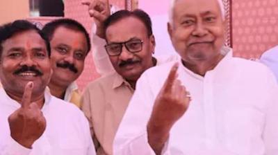 कड़ी सुरक्षा के बीच नीतीश ने डाला वोट, साथ खड़े शख्स की पहचान को लेकर मची हलचल