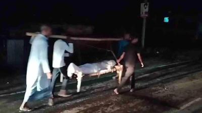 सड़क न होने से खटिया पर ले जाई गई प्रसव पीड़ित महिला