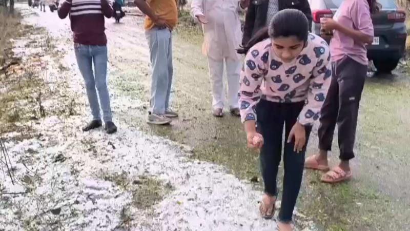 नीमच: मध्य प्रदेश के नीमच में रविवार शाम अचानक हुई बेमौसम बारिश और भीषण ओलावृष्टि ने पूरे क्षेत्र को सफेद चादर से ढक दिया. हालात ऐसे थे कि सड़कें और खेत-खलिहान कश्मीर की तरह बिल्कुल सफेद हो गए, लेकिन यह सफेदी सुकून नहीं बल्कि किसानों के लिए बर्बादी का संदेश लेकर आई. अचानक हुई ओलावृष्टि ने लहलहाती फसलों को काफी नुकसान पहुंचाया है.