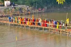 चचरी पुल से जान जोखिम में डालकर अर्घ्य, प्रशासन की लापरवाही उजागर