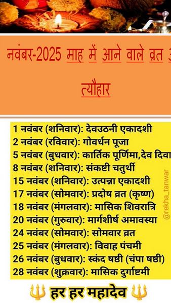 नवंबर 2025 में पड़ने वाले व्रत और त्योहार