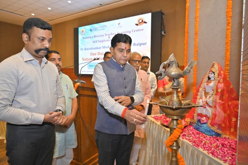 रायपुर : उच्च शिक्षा मंत्री टंक राम वर्मा ने नई शिक्षा नीति 2020 पर आजपं. रविशंकर शुक्ल विश्वविद्यालय, रायपुर में मालवीया मिशन टीचर ट्रेनिंग सेंटर एवं एनईपी इम्प्लीमेंटेशन सेल के संयुक्त तत्वावधान में राष्ट्रीय शिक्षा नीति-2020 पर एक दिवसीय कार्यशाला का आयोजन किया गया। विश्वविद्यालय सभागार में आयोजित इस कार्यशाला में उच्च शिक्षा मंत्री टंक राम वर्मा ने कहा कि राष्ट्रीय शिक्षा नीति-2020 देश की शिक्षा व्यवस्था को नई दिशा और दृष्टि देने वाली है। यह नीति न केवल विद्यार्थियों के सर्वांगीण विकास पर बल देती है बल्कि इसमें कौशल विकास, रोजगारपरक शिक्षा और अनुसंधान को भी प्राथमिकता दी गई है। उन्होंने कहा कि नई शिक्षा नीति से उच्च शिक्षा संस्थानों को अकादमिक उत्कृष्टता प्राप्त करने का अवसर मिलेगा और युवाओं का भविष्य और भी उज्ज्वल होगा। सरकार निरंतर प्रयासरत है कि प्रदेश का प्रत्येक युवा गुणवत्तापूर्ण शिक्षा प्राप्त करे और अपनी प्रतिभा के बल पर समाज और राष्ट्र के विकास में योगदान दे।