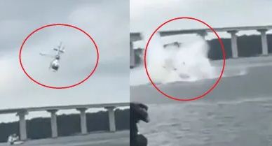पुलिस का हेलिकॉप्टर सीधे नदी में गिरा