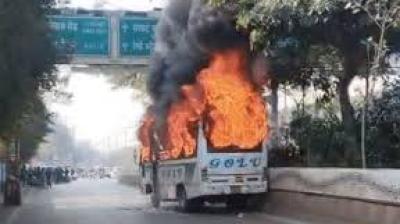 इंदौर में बड़ा हादसा: पटेल ब्रिज के नीचे विधायक गोलू शुक्ला की बस में लगी आग
