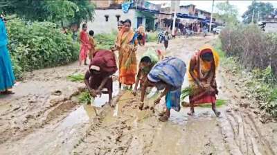 सड़क नहीं बनी तो खेत बना डाली सड़क! बड़खेड़ा में महिलाओं ने रोप दी धान की फसल