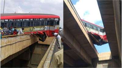 दमोह में बड़ा हादसा टला: तेज बहाव में बस उतारने की लापरवाही, पुल से लटकी